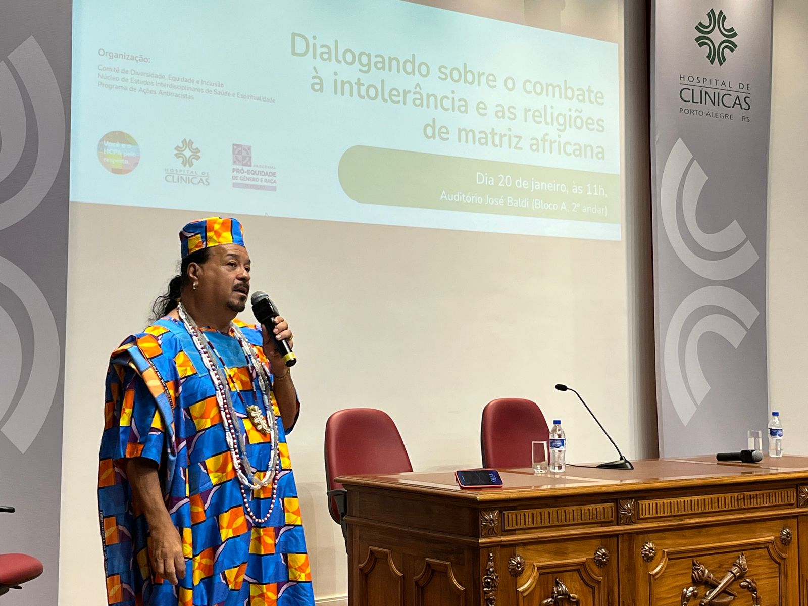 Baba Diba saudou a prática do HCPA, de permitir a entrada de líderes religiosos para visitar pacientes. Contou que já foi barrado em presídios, crematórios e até em hospitais. Por outro lado, afirmou que um terreiro é um espaço de cuidado, inclusive com a saúde. “Nós cuidamos de doenças físicas em conjunto com a Medicina tradicional. Não retiramos medicamentos, nem criticamos. A gente cuida da pessoa. Faz os banhos, os ebós (oferendas), e isso ajuda”, disse.