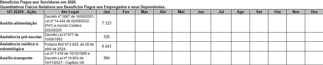 Quantitativos físicos relativos aos benefícios pagos aos empregados e seus dependentes em 2025 / 2026: