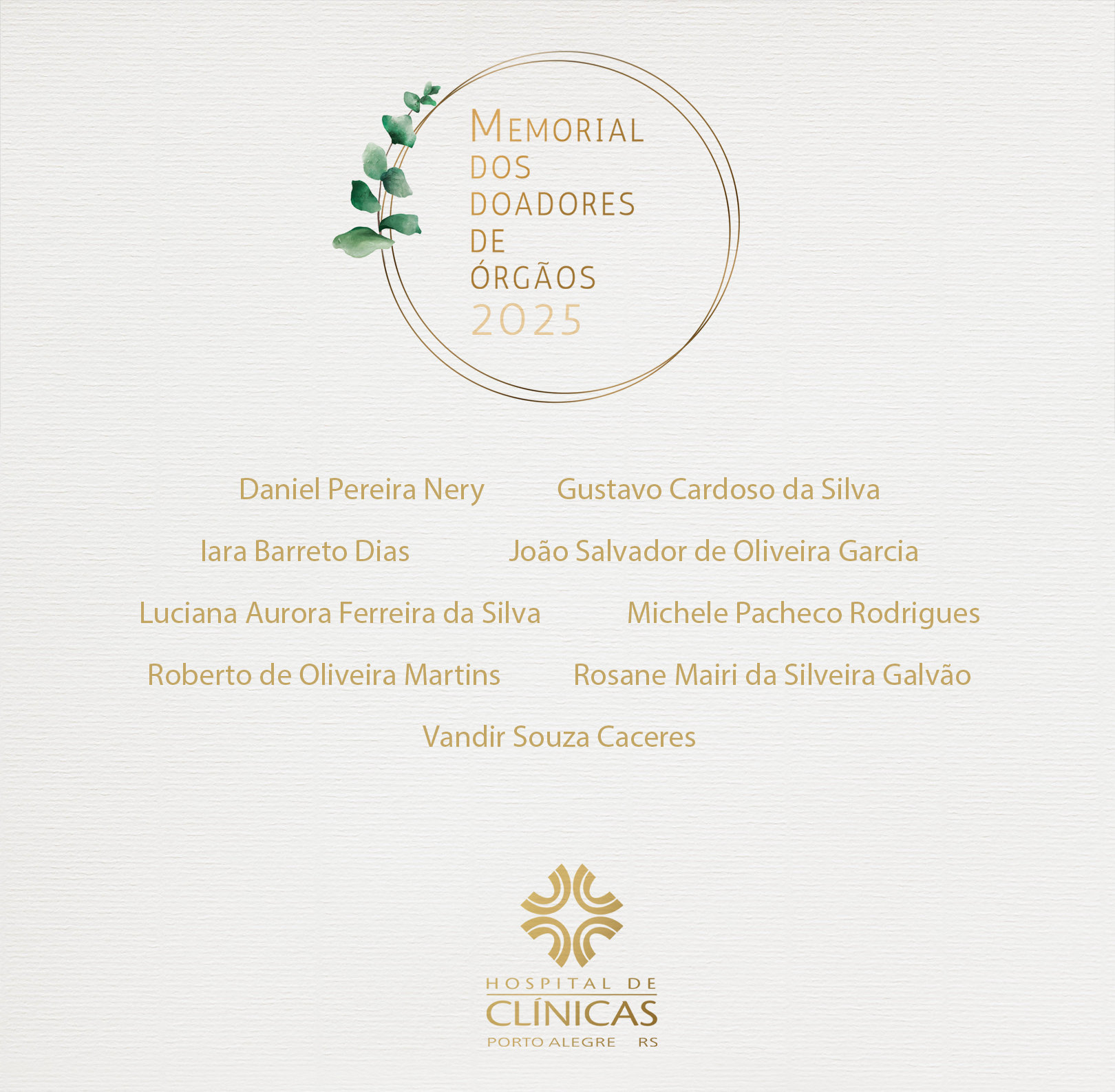 Este Memorial homenageia os doadores de órgãos e tecidos do HCPA*, até então heróis anônimos, deixando de forma perene o reconhecimento e o agradecimento às famílias que, através de um sim num momento de grande dor e tristeza, concretizaram esse ato de amor e generosidade.